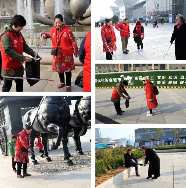 另一路志愿者则手持垃圾夹子在西客站东广场巡游捡拾垃圾斜马路捡拾垃圾,仔细寻找被丢弃在地上的烟头和纸屑。巡游过程中,旅游志愿者柳毓富说道现在的站前广场越来越干净,这也是近几年济南城市卫生状况和市民游客素质不断提升的最好表现。广场值班的环卫工人主动与志愿者们交流,感叹道如果所有人都能像志愿者们一样,那他们的工作真的能够轻松很多,并向志愿者们表达了敬意。
