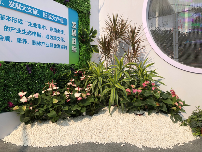 第七届文博会胜利召开之际,济南百合园林集团向国内外参展商展示了我们精湛的园林工程、专业的设计团队、丰富的种植经验。苗木种植基地提供的鲜花绿植成为展位一大亮点,清新百合、艳丽红掌及香气扑鼻的栀子花等,竞相盛开,为活动现场增加了清新绿色的氛围,专业园艺师现场为大家展示插花技艺,一盆盆小型的普通植物被设计、装点、组合成观赏度很高的花卉盆景,吸引了现场众多观众驻足、品鉴。