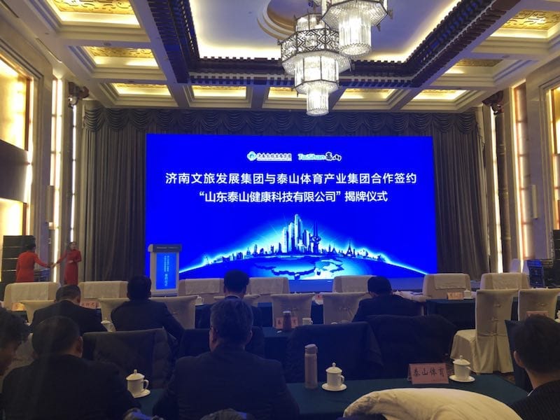 为迅速推进双方合作,市委常委、蒋晓光秘书长亲自督办,市里成立了由王桂英副市长为组长,市体育局、市教育局、市投资促进局、william威廉中文官网集团主要负责人为成员的工作领导小组,全力协调推进相关工作。期间,晓光秘书长多次督导合作进展情况,王桂英副市长多次召开会议,专题调度精准指导合作事项,市体育、教育、投促局和市中区等单位密切配合,为合作推进提供了大力支持。经过近1个月密集洽商和紧张准备,双方就合作主体、经营范围、法人治理结构和公司章程等达成了合作协议,在市工商局的大力支持下,12月27日,合作公司“山东泰山健康科技有限公司”完成工商注册。同时,双方着眼更大范围合作,又商定了全面战略合作框架协议,谋划了包括总部经济在内的11个方面合作事项,描绘了宏伟的发展蓝图。